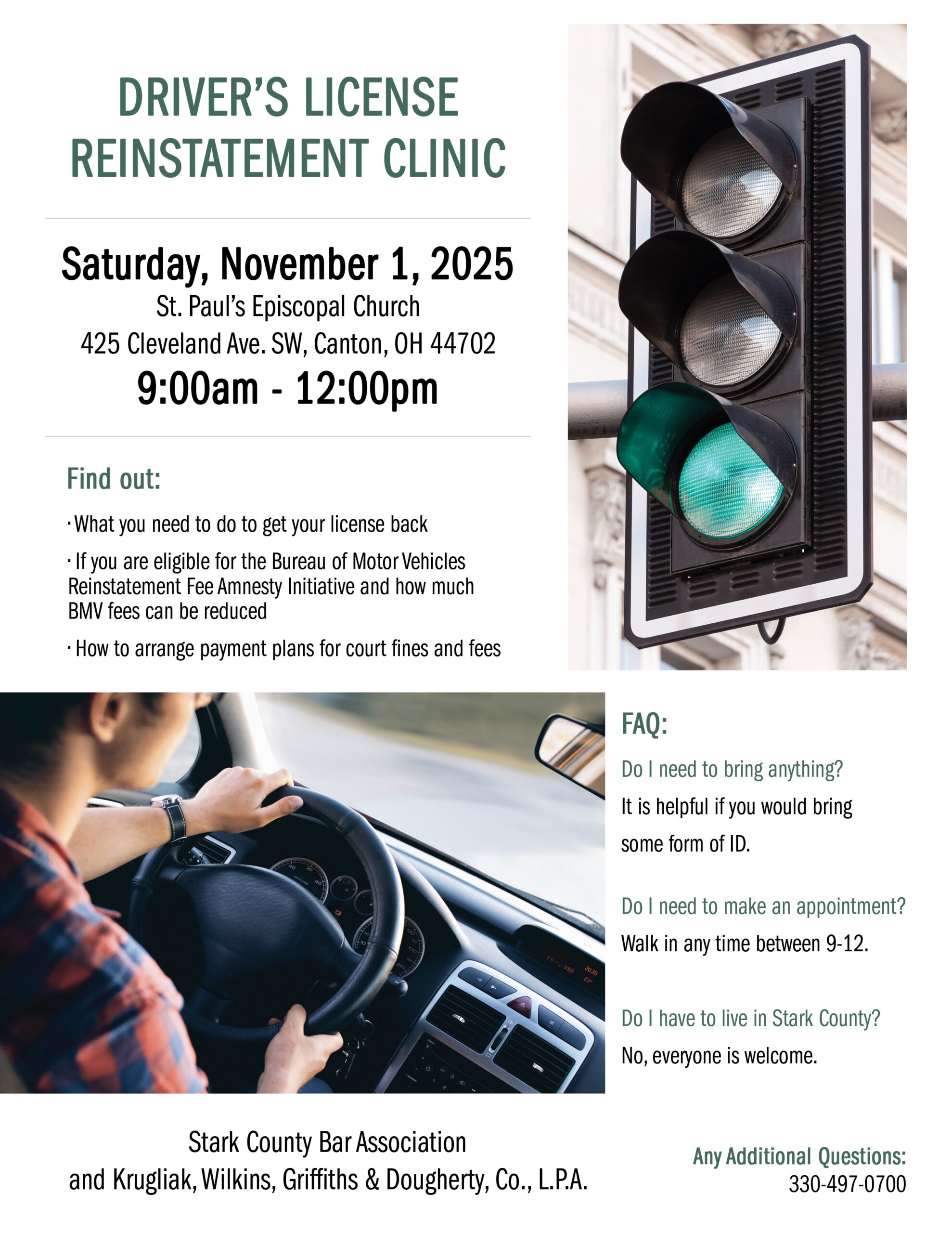 - Insight into the Stark County Bar Association: Attendees will have the opportunity to learn more about the mission and the wide range of services provided by the Stark County Bar Association.